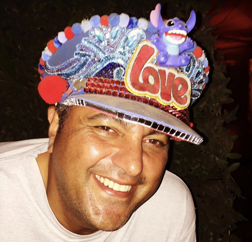 In this big band style hat. Embellished with sequins, glitter, red and blue glitter paint, reflective tape, japanese vinyl figurine, mirror ball tiles, fluorescent crystals, reflective ribbon, pom-poms and love. This is a one off hand made piece of wearable art & it takes around a week to complete one of these babies. Please order as you would like it. (colours and size etc)